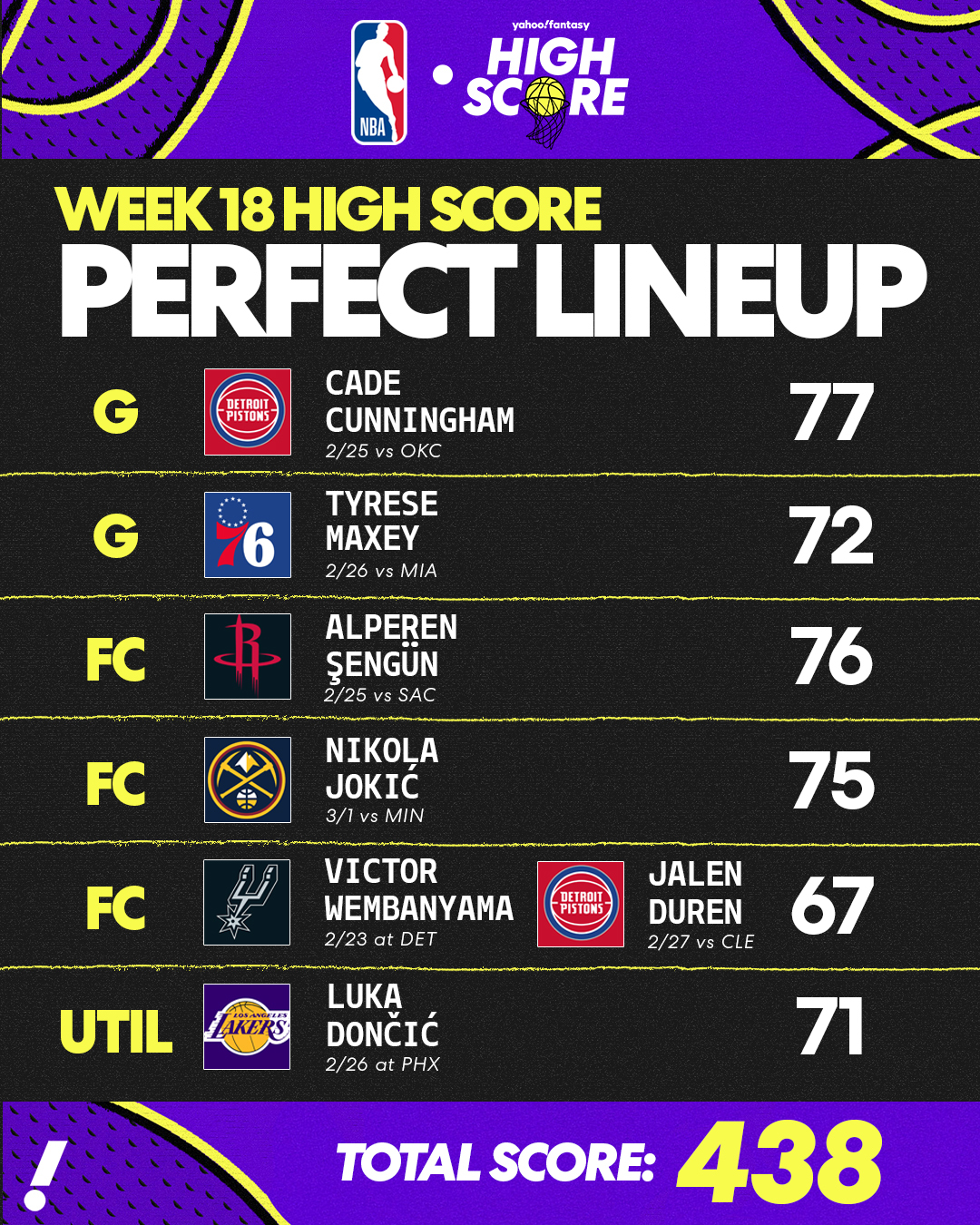 We're looking at the top performances from High Score to form the Week 18 perfect fantasy basketball lineup.